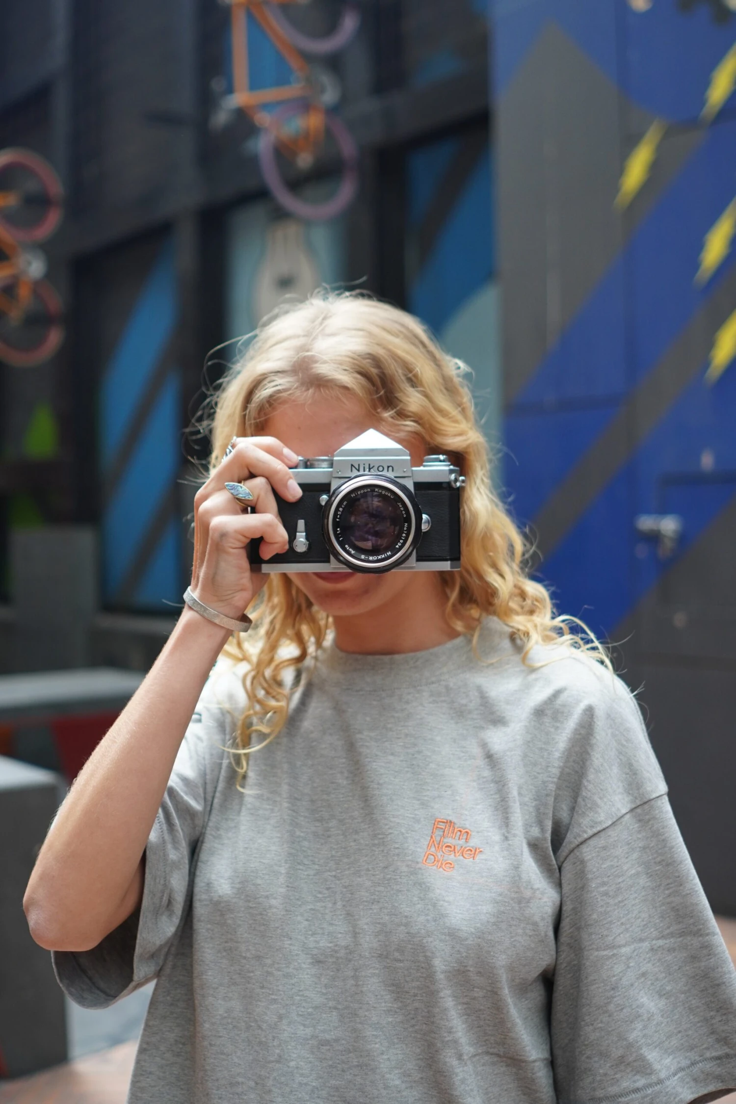 FilmNeverDie ‘Think Positive, Shoot Negative’ Tee – Grey/Orange